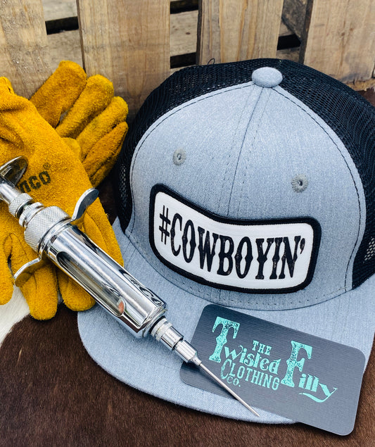 #Cowboyin’ - Infant / Toddler Trucker Hat - Blk/Htr Gry