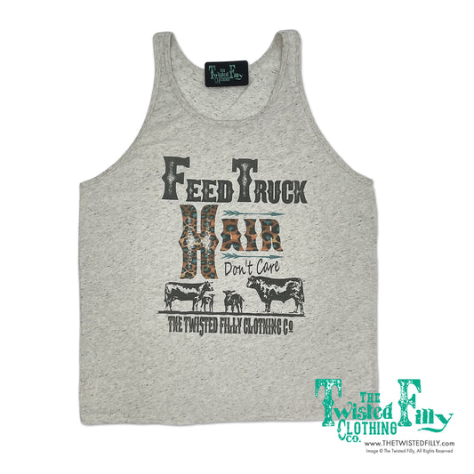 Feed Truck Hair Don't Care - Adult - V-Neck S/S Tee, or Racerback Tank - Oatmeal