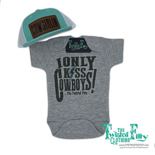 I Only Kiss Cowboys - S/S Infant One Piece - Grey