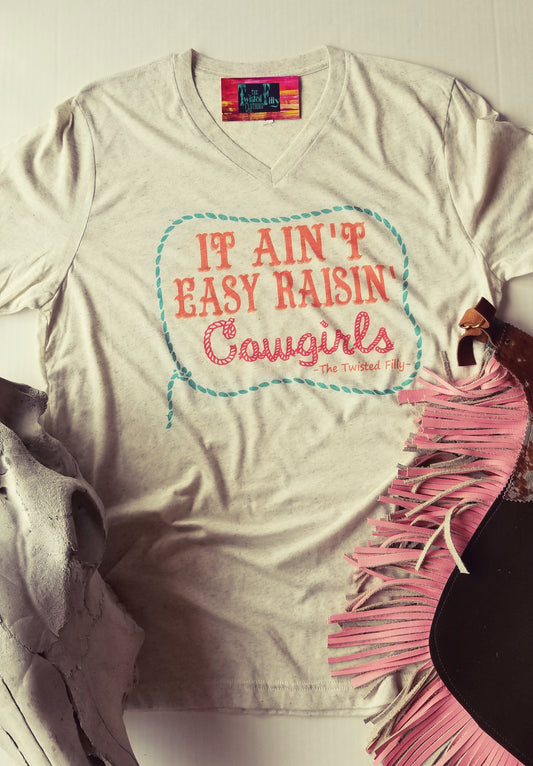 It Ain't Easy Raisin' Cowgirls - S/S Adult V-Neck Tee - Oatmeal