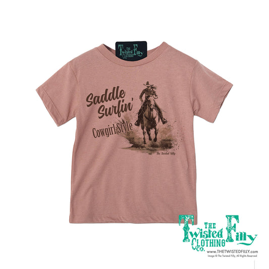 Saddle Surfin' Cowgirl Style - S/S Girls Toddler Tee - Assorted Colors