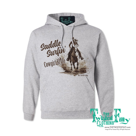 Saddle Surfin' Cowgirl Style - Adult Womens Hoodie - Assorted Colors