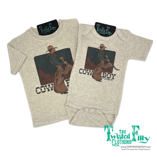 Pluckin and Buckin Turkey Bronc COWGIRL - S/S Youth Tee - Oatmeal