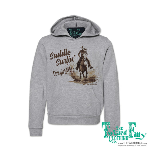 Saddle Surfin' Cowgirl Style - Youth Girls Hoodie - Assorted Colors