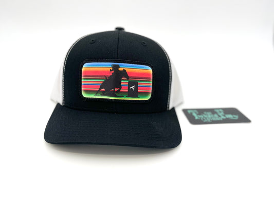 Serape Barrel Racer - Youth/Adult Trucker Hat - Black/White
