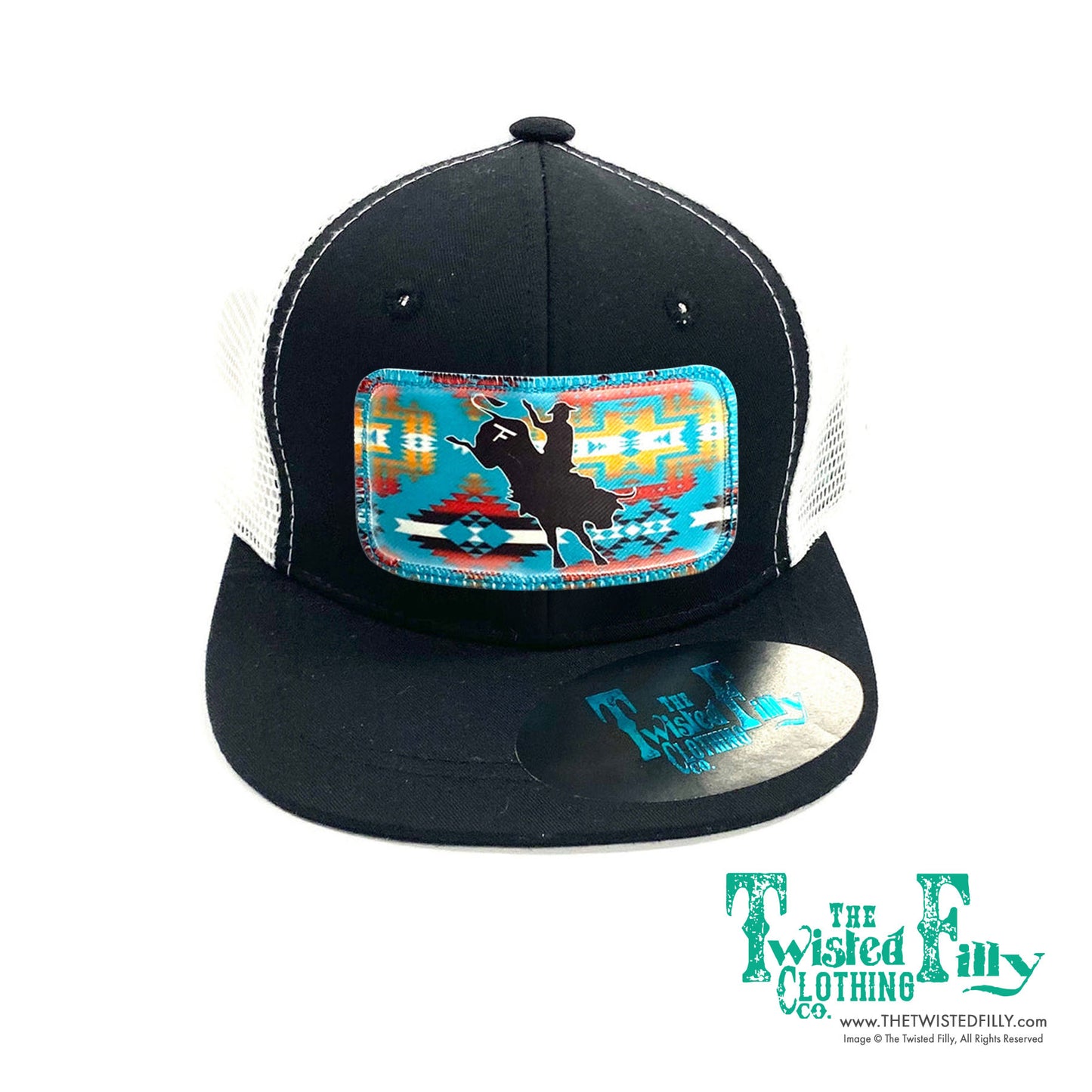 Aztec Bull Rider - Youth /Adult Trucker Hat - Blk/White