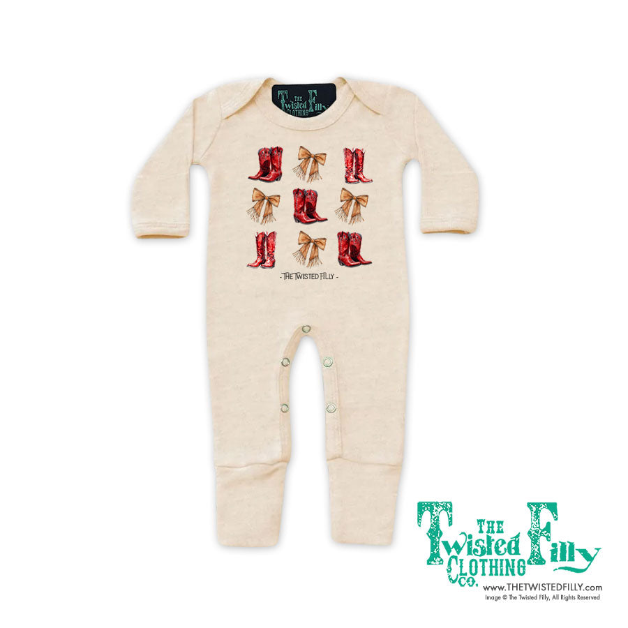 Boots & Bows - Infant Jumpsuit w/ Mittens - Oatmeal