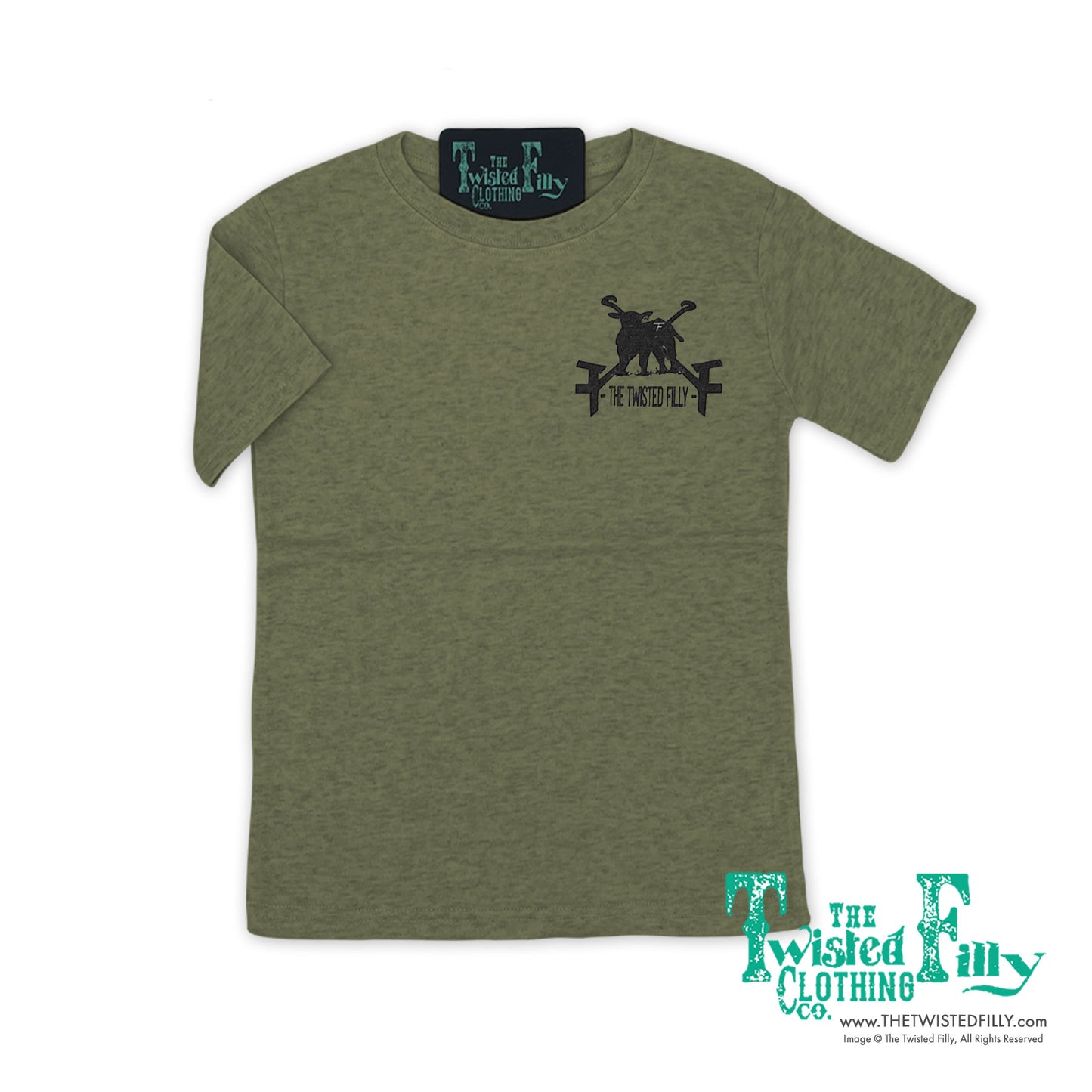 Fall or Spring branding, you know you gotta do it! Brand them weaners! This tee, is a must have staple in your cowhands closet. Available in Infant - Adult for those perfect matching Dad and Me tee’s! Your cowpokes are going to love this super soft and breathable tee.