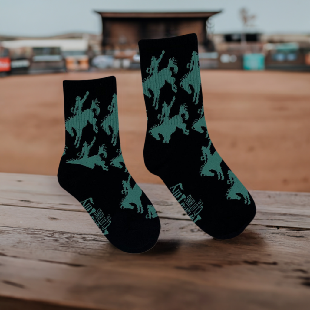 Bronc Rider Toddler Socks - Black / Turquoise