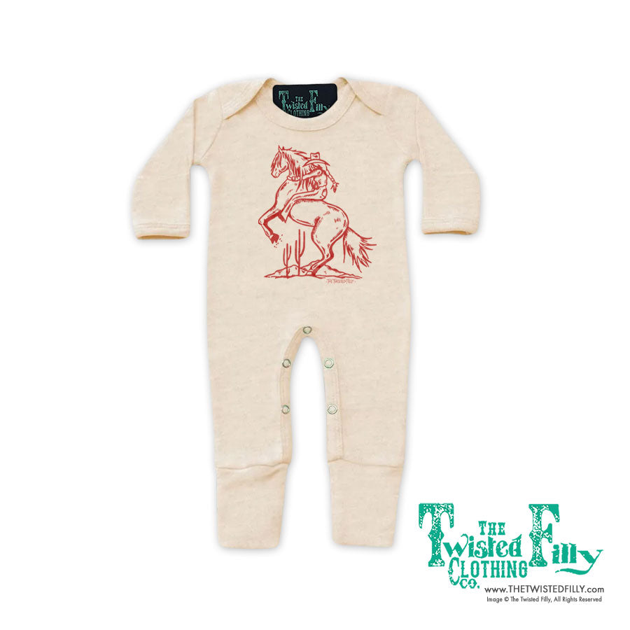 Bucking Cowgirl - Infant Jumpsuit w/ Mittens - Oatmeal