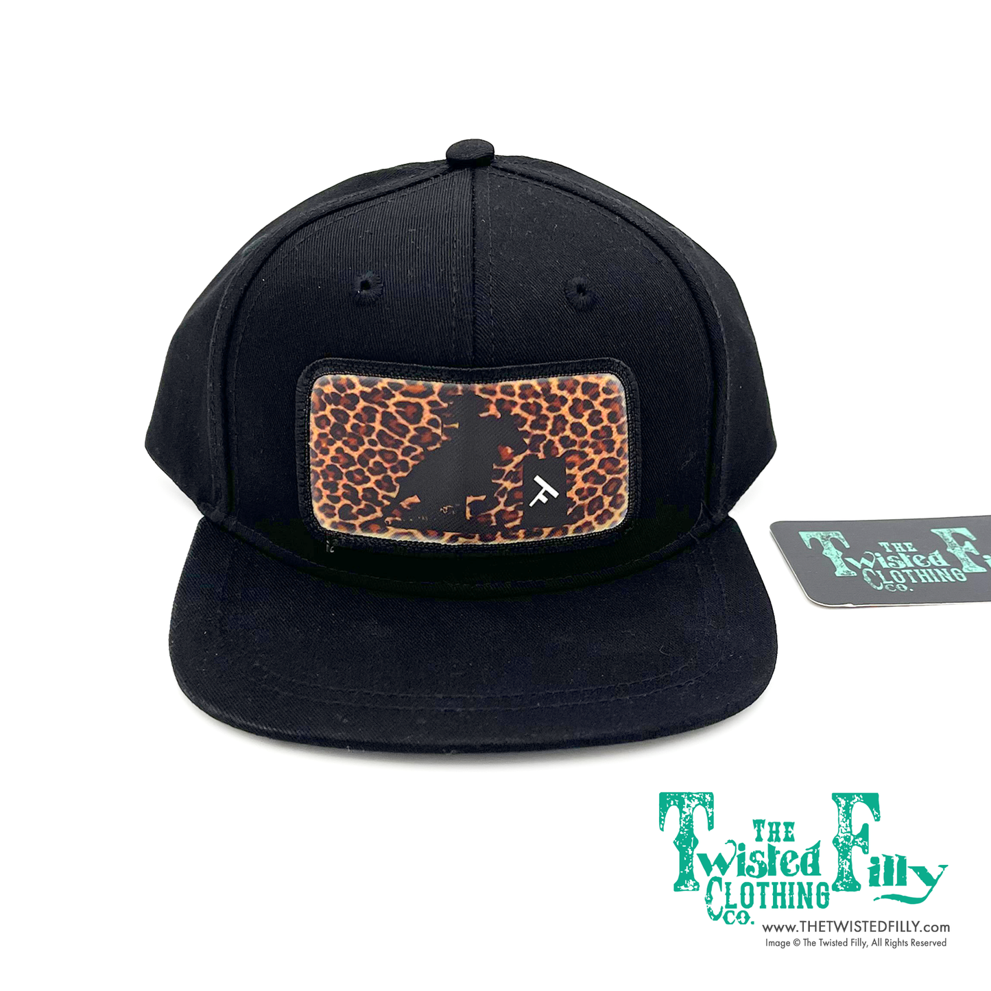 For all those little youth cowgirls that aspire to be a Rodeo Queen one day, this is for them! This black snapback cap with a cheetah and barrel racer in black is one of our most popular!