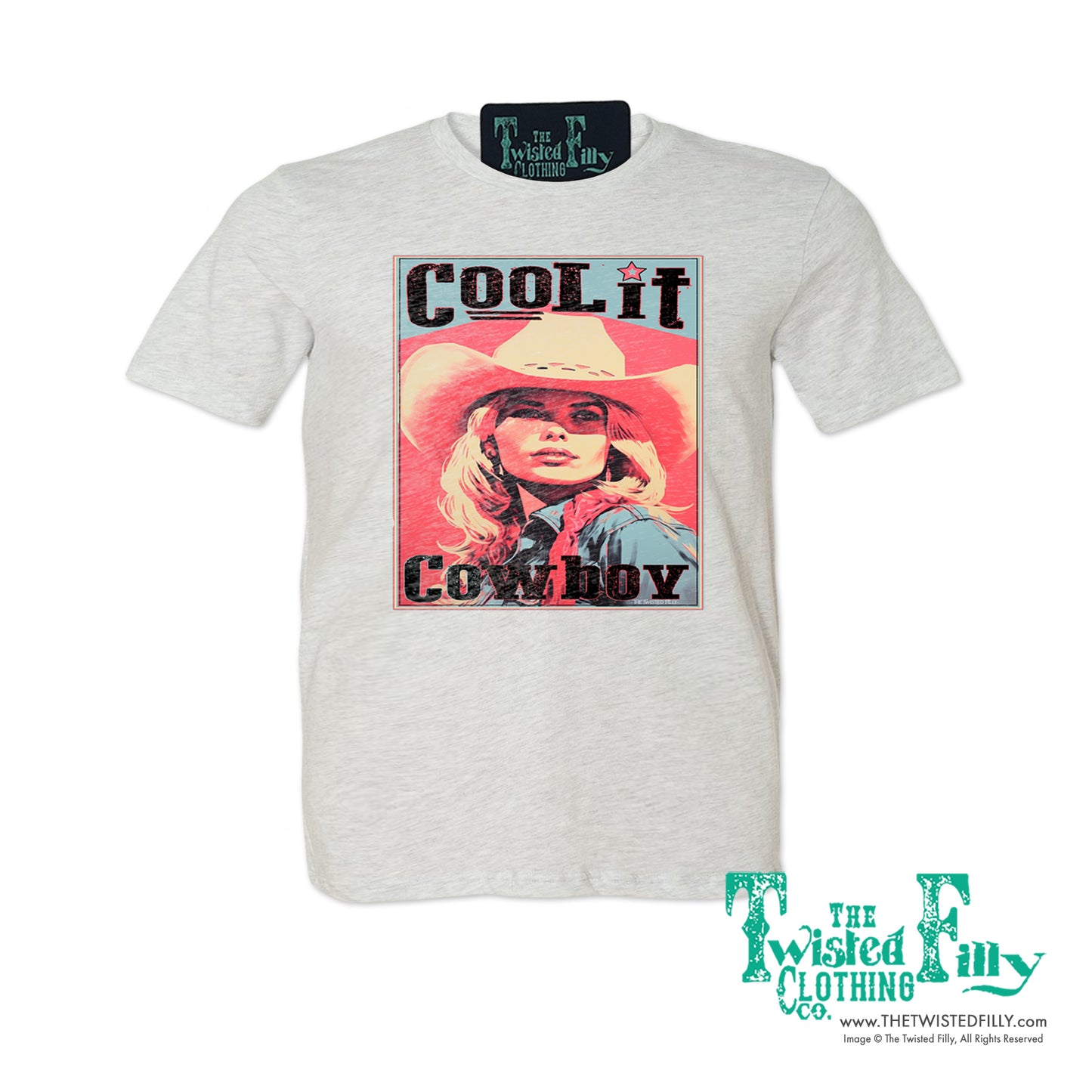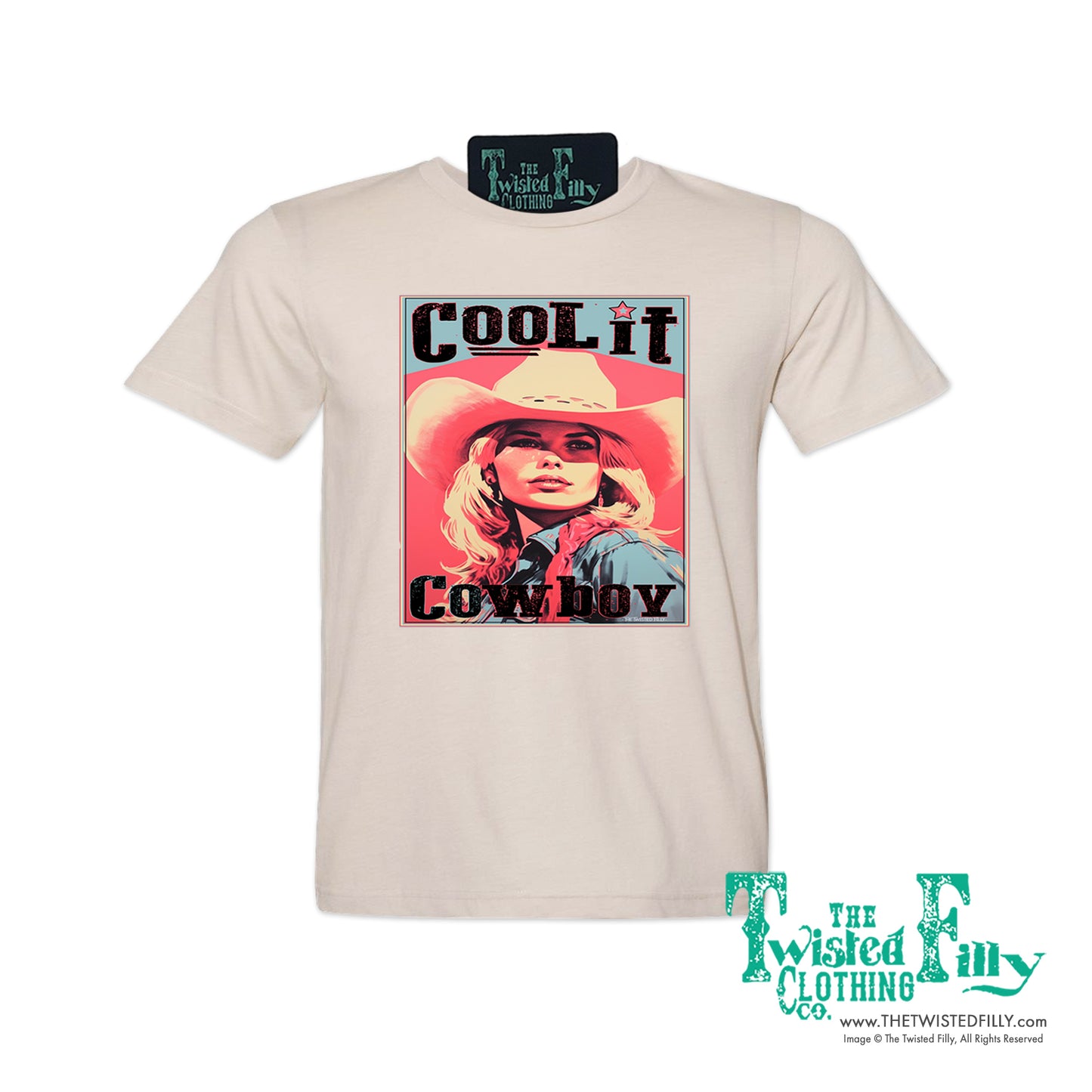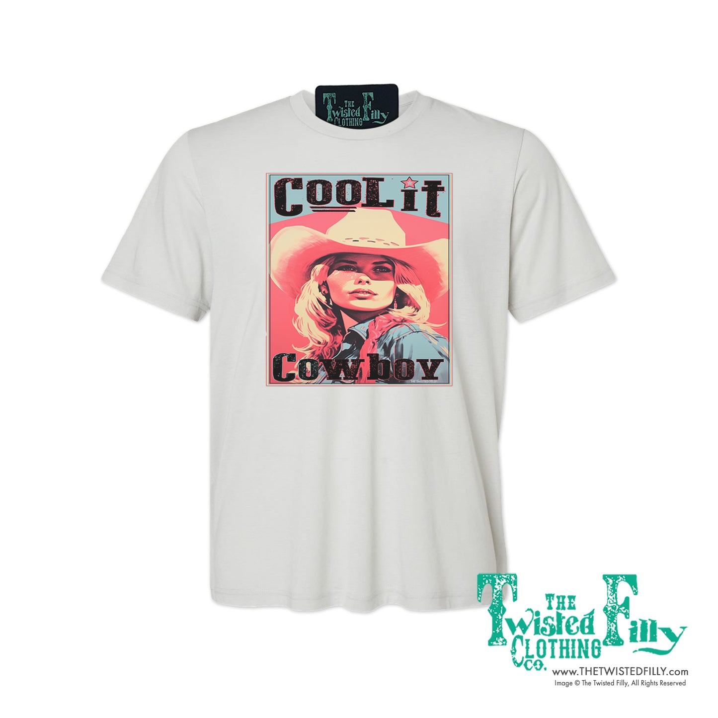 Get your cowgirl on in this Cool It Cowboy colorful tee. With its vintage western flair and bold attitude, you'll be the coolest ranch hand around. Perfect for staying stylish while you work, this colorful tee is sure to be your new favorite.