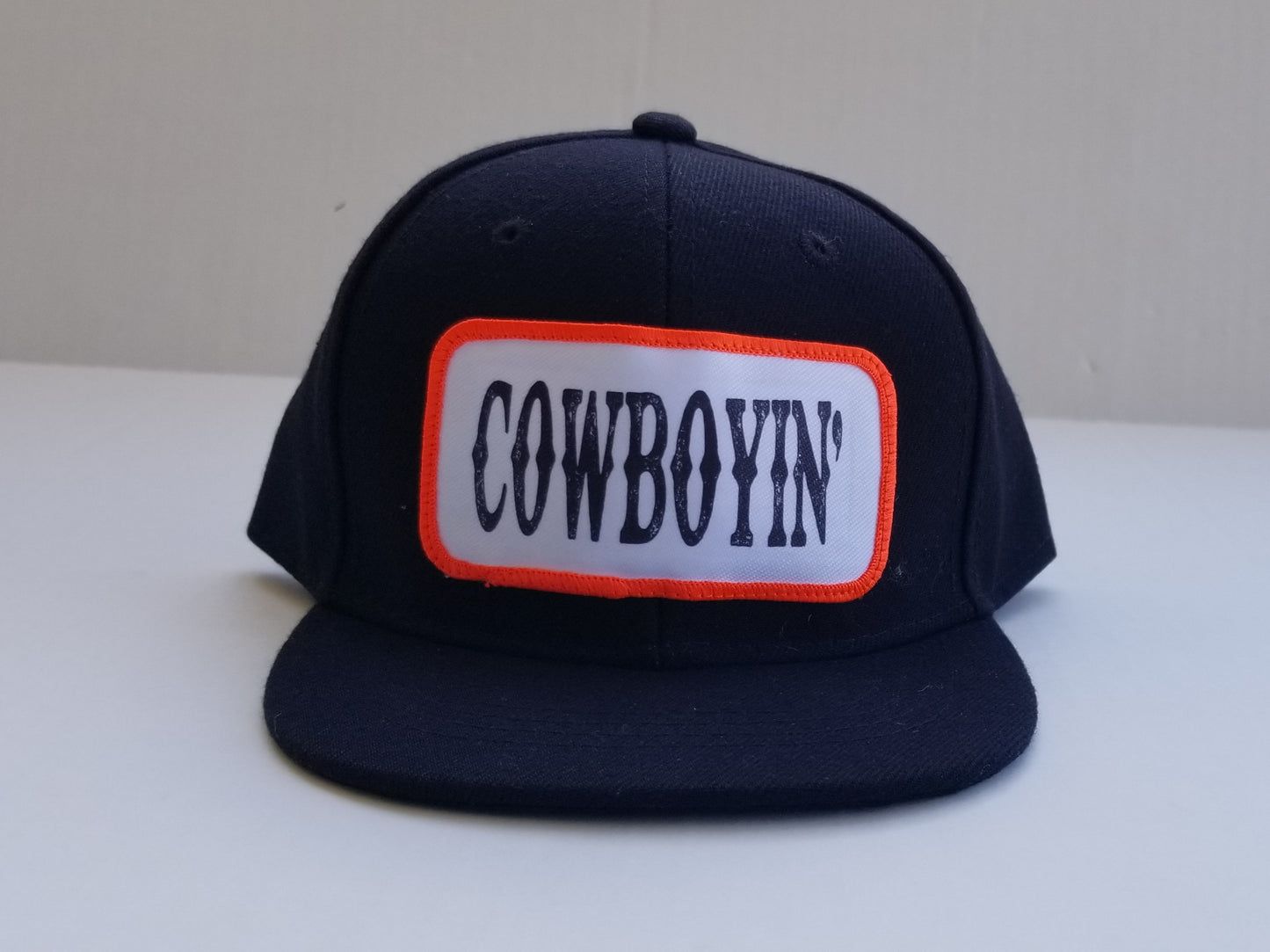 Cowboyin' - Youth/Adult Snapback Hat - Neon Orange/Black