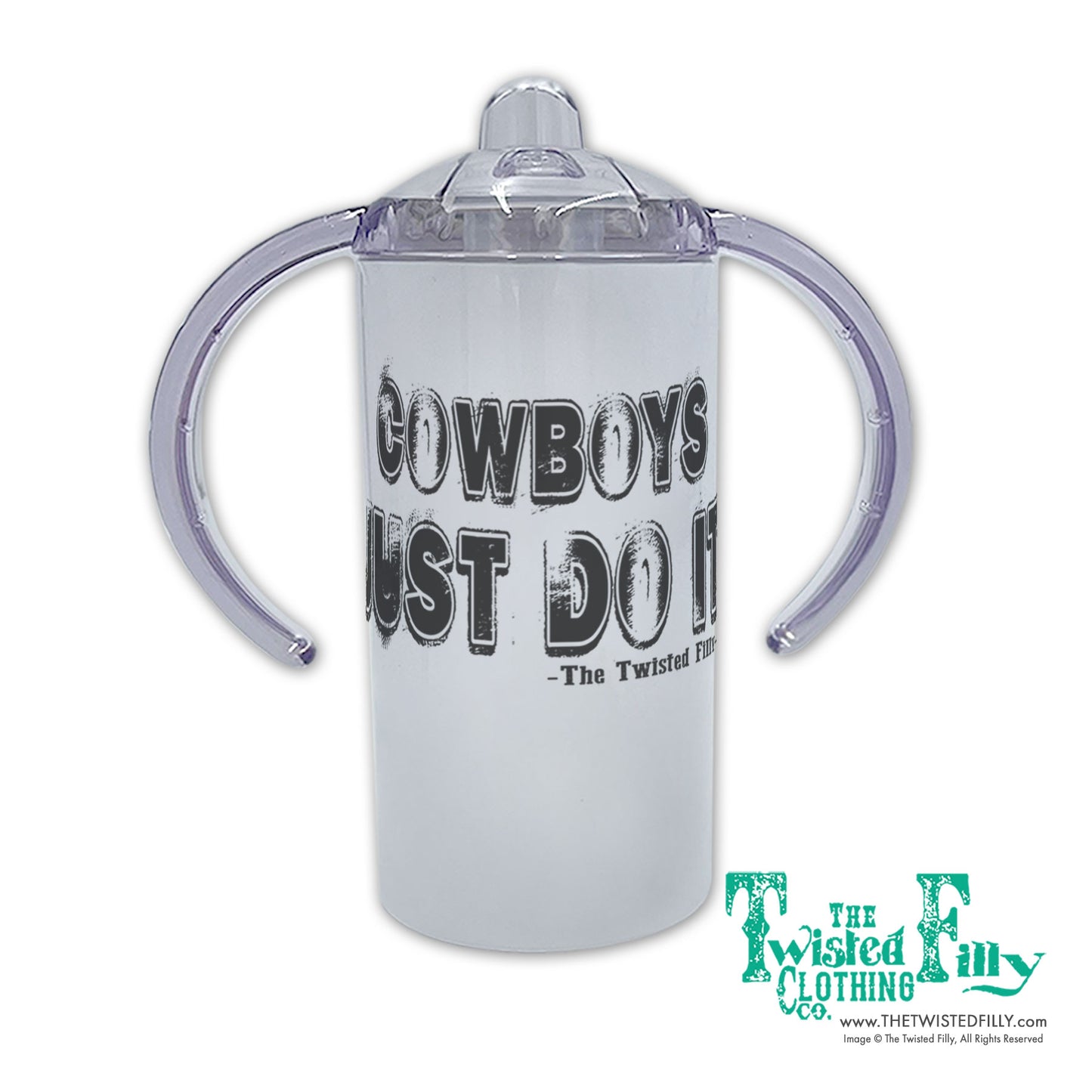 Cowboys Just Do It - cuz they ain't got time for nothin' else! Outfit 'em with this true-as-it-gets sippy cup so they'll look good and stay hydrated all day on the ranch with just the right amount of attitude and style!
