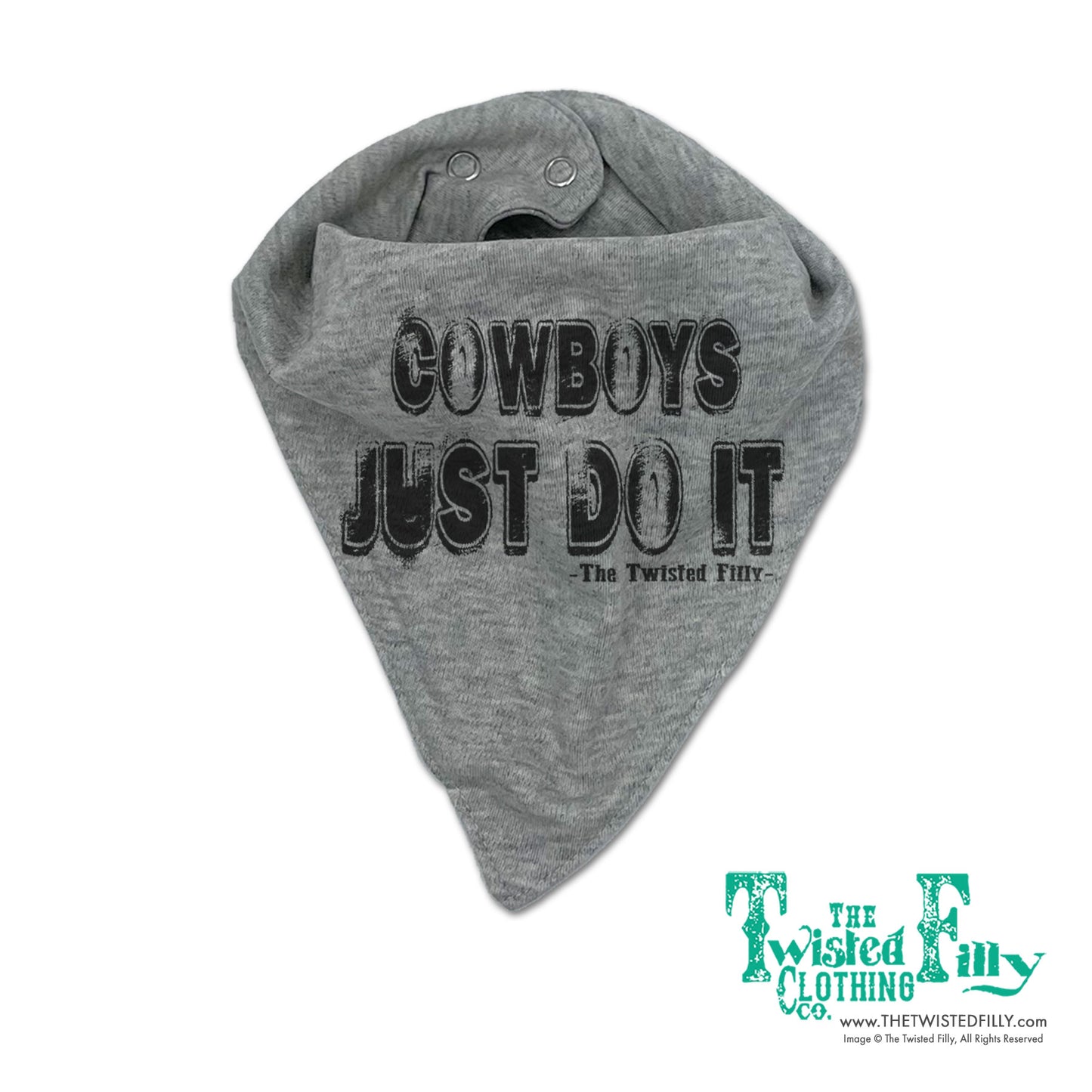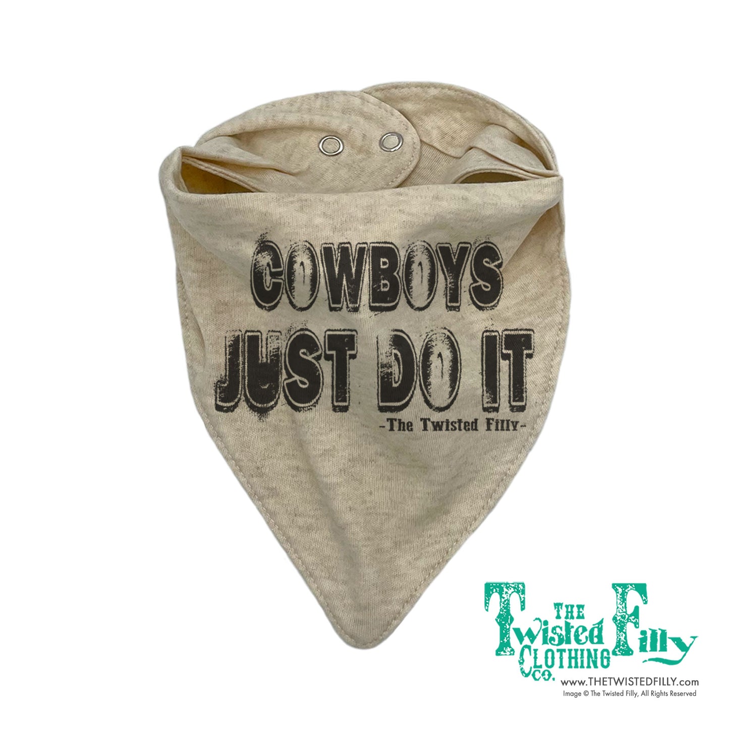 Cowboys Just Do It - cuz they ain't got time for nothin' else! Outfit 'em with this true-as-it-gets bandana style bib so they'll look good and stay clean all day on the ranch.