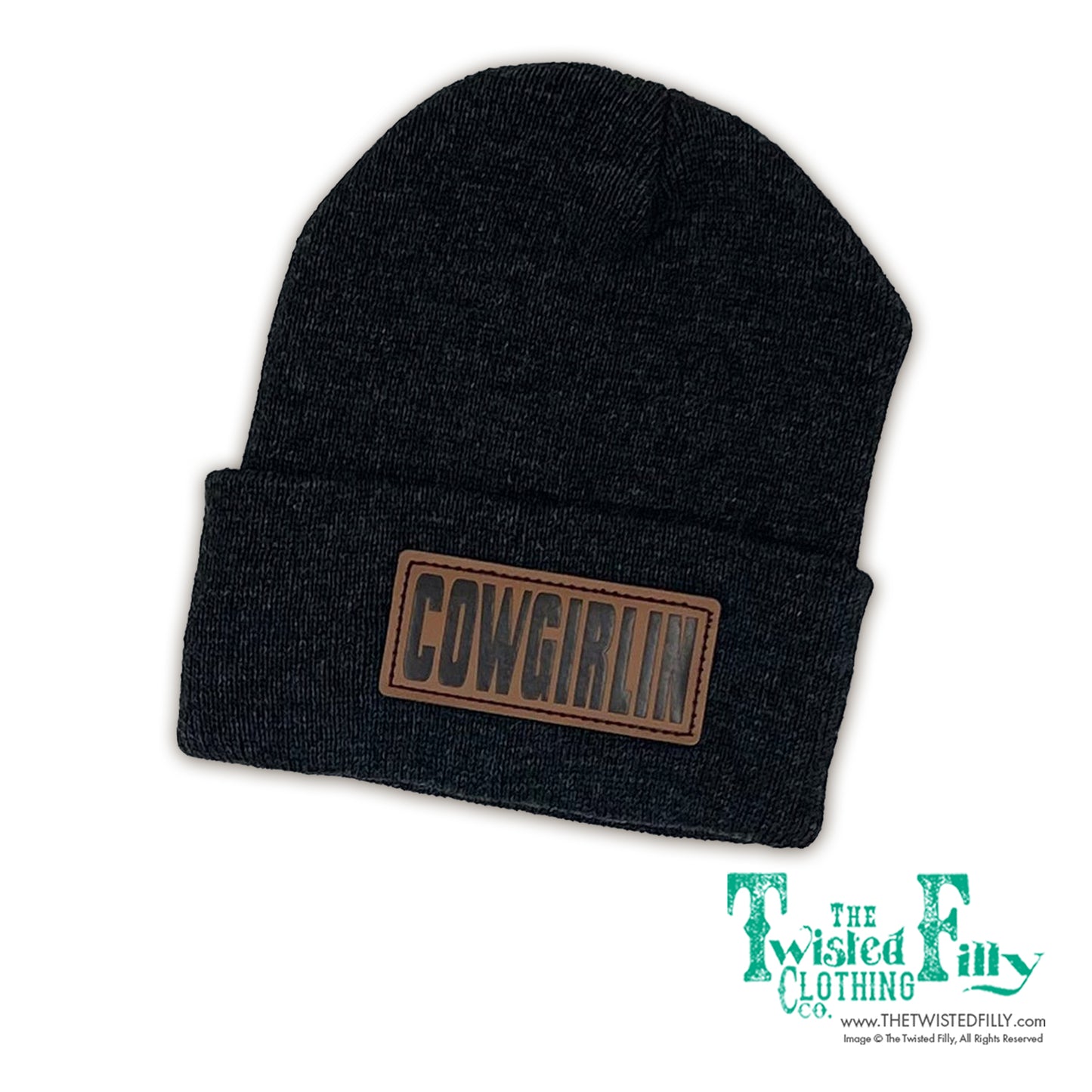 Cowgirlin' Leather Patch Beanie - Charcoal