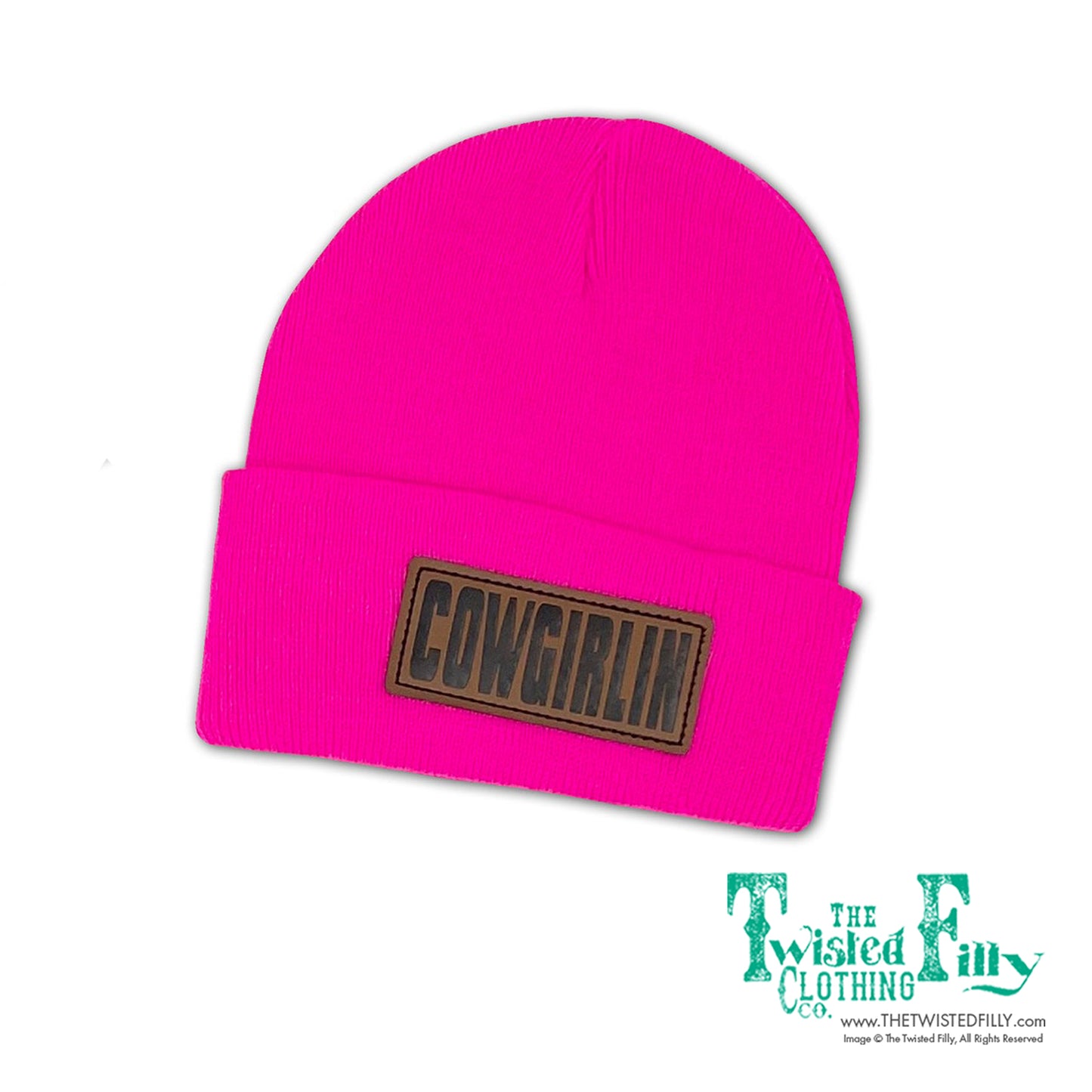 Cowgirlin' Leather Patch Beanie - Neon Pink