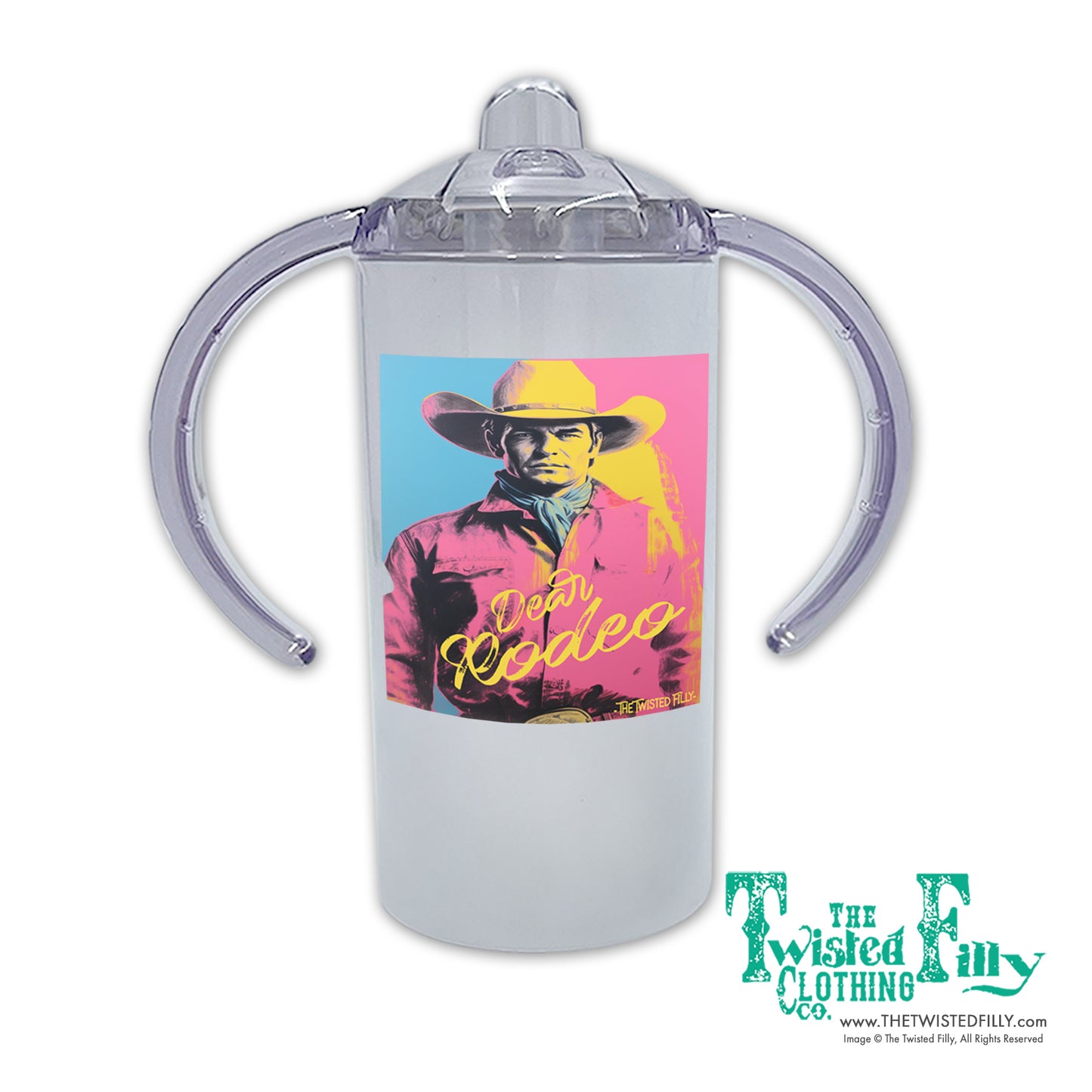 Celebrate your love of Rodeo with our Dear Rodeo western-inspired sippy cup! Combining vintage vibes with a pop of color, this sippy is perfect for showing off your passion for Rodeo. Perfect for budding cowgirls and cowboys, it's sure to be a hit!
