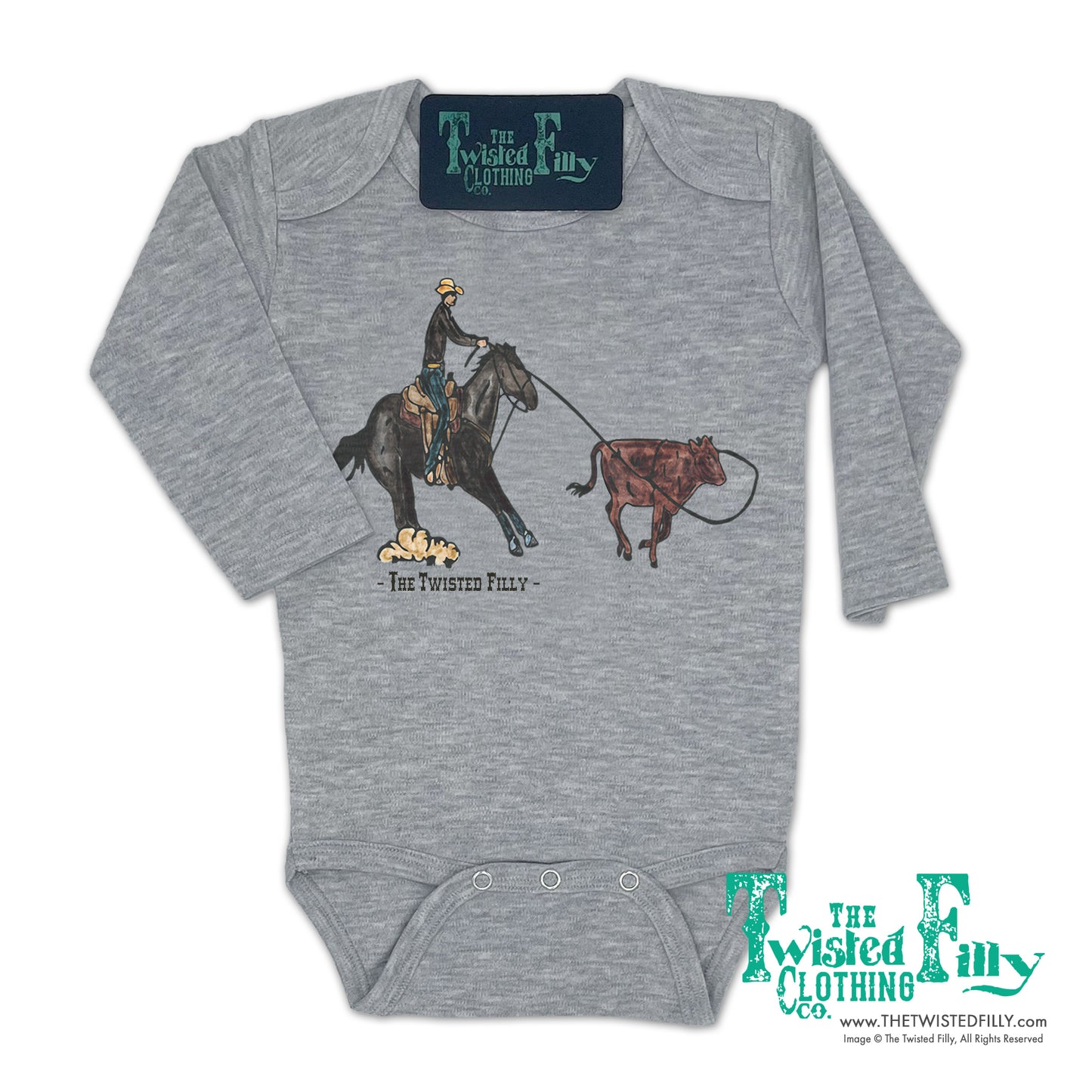End Of The Line Calf Roper - L/S Infant One Piece - Gray