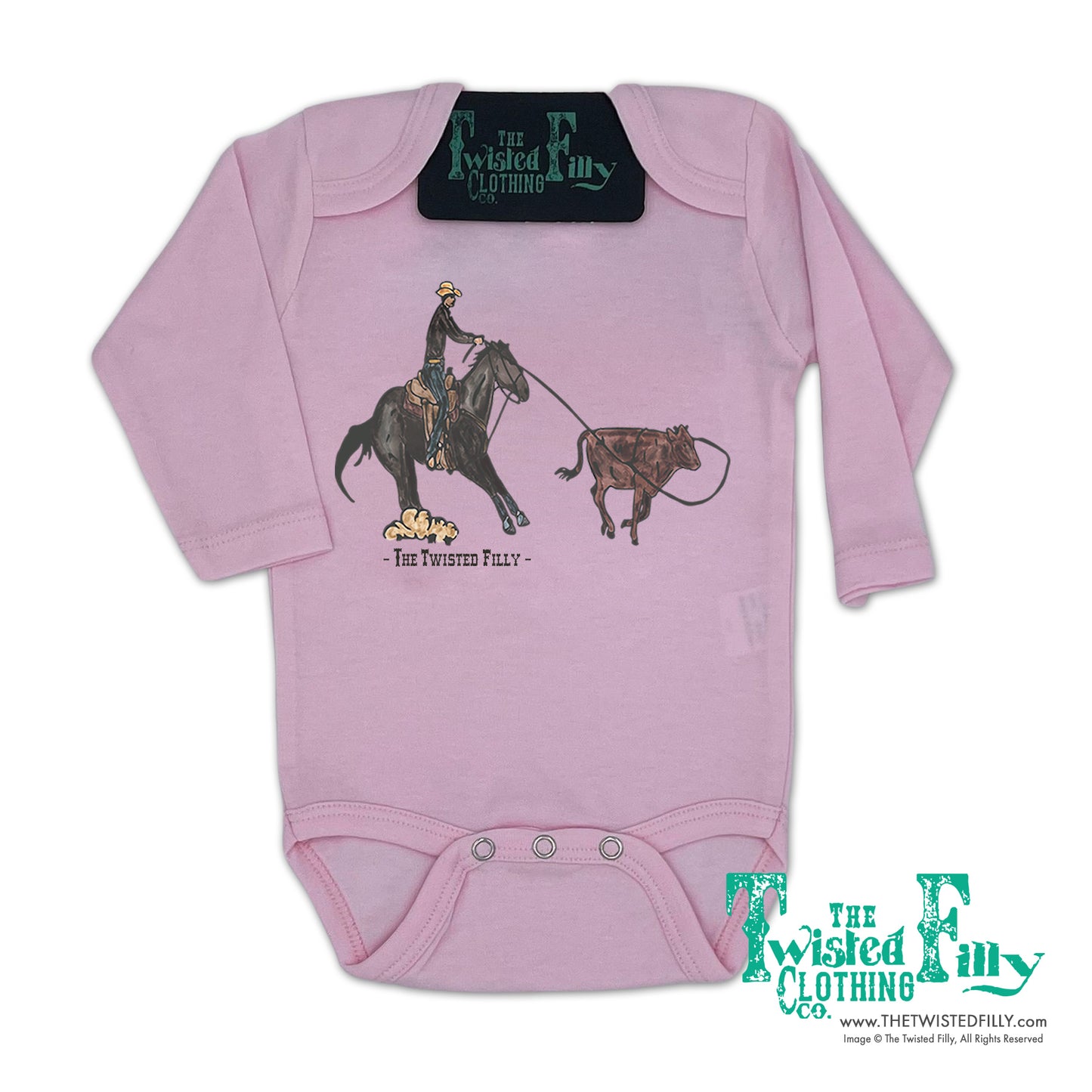 End Of The Line Calf Roper - L/S Infant One Piece - Pink