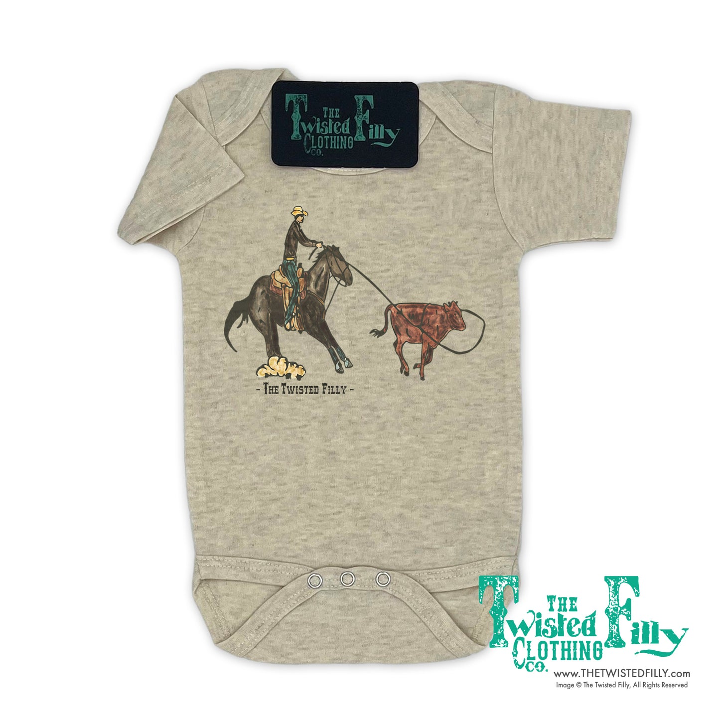 End Of The Line Calf Roper - S/S Infant One Piece - Oatmeal