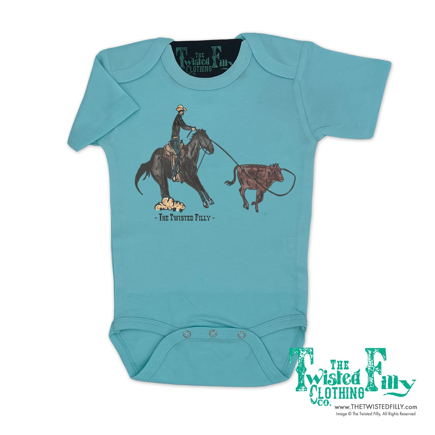 End Of The Line Calf Roper - S/S Infant One Piece - Turquoise