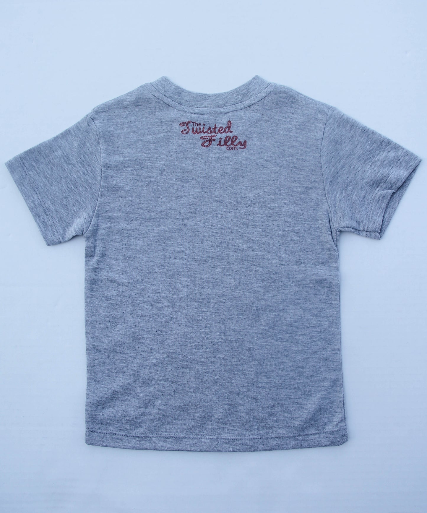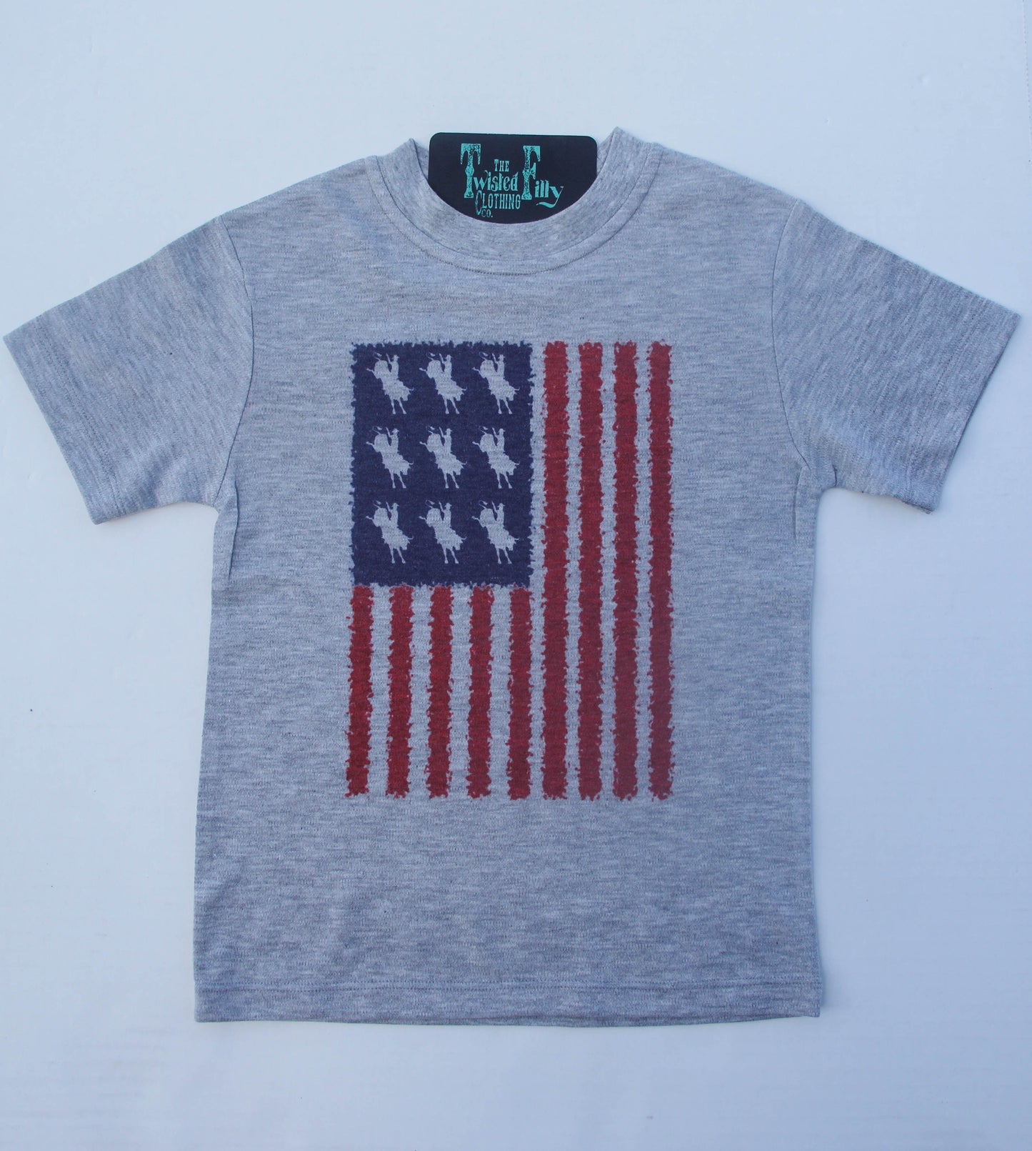 This tee is perfect for summer, or any holidays celebrating our great nation. We are very loyal to the Red, White & Blue here at the Twisted Filly and love to represent our nation by sporting two of our favorite things. Our Flag & Rodeo! This tee is a short sleeve crew neck 65% Poly and 35% Cotton. It has softness for days, although we hope you do not wear it for days! :)