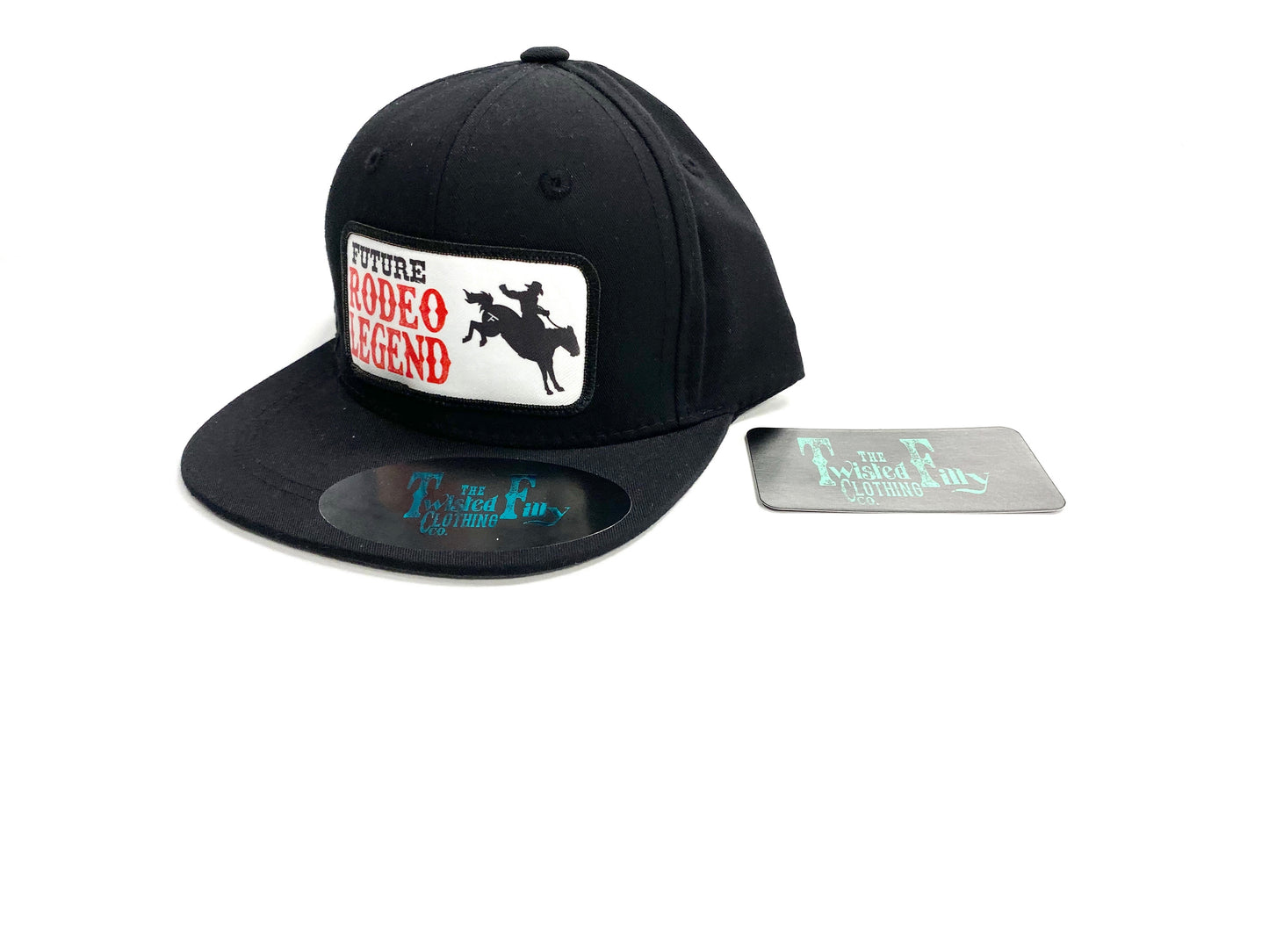 Do you have a Future Bronc Riding Rodeo Legend your raisin'? Teach them young how to dress for success with this Future Rodeo Legend cap, comes in black with a bucking bronc. This cap is a high quality flat bill with an adjustable snap back closure.