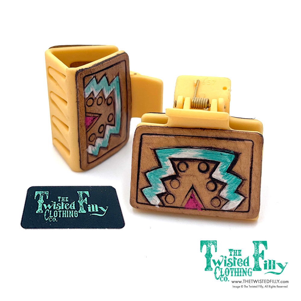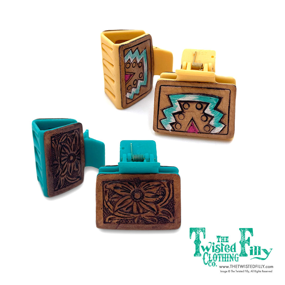 Turn heads with this unique hand painted genuine leather heavy duty hair clip in a smaller size. Crafted with genuine hand stamped and hand painted leather, it's perfect for adding a touch of western flair to any look. This listing is for 1 clip of your choice.
