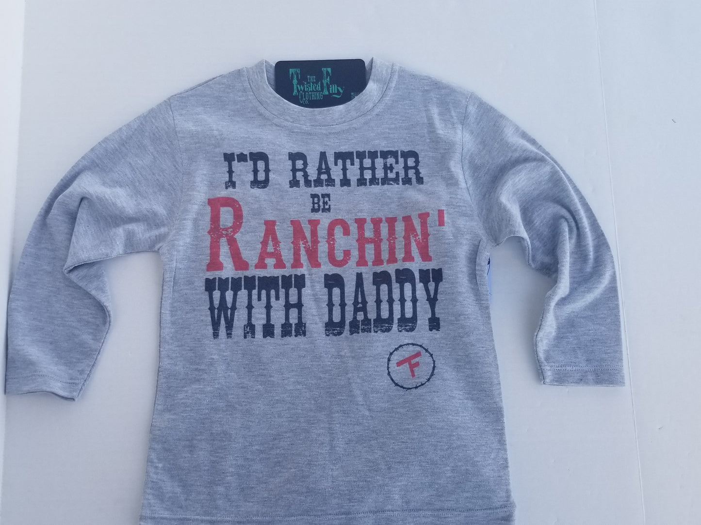 I'd Rather Be Ranchin' With Daddy - L/S Toddler Tee - Gray