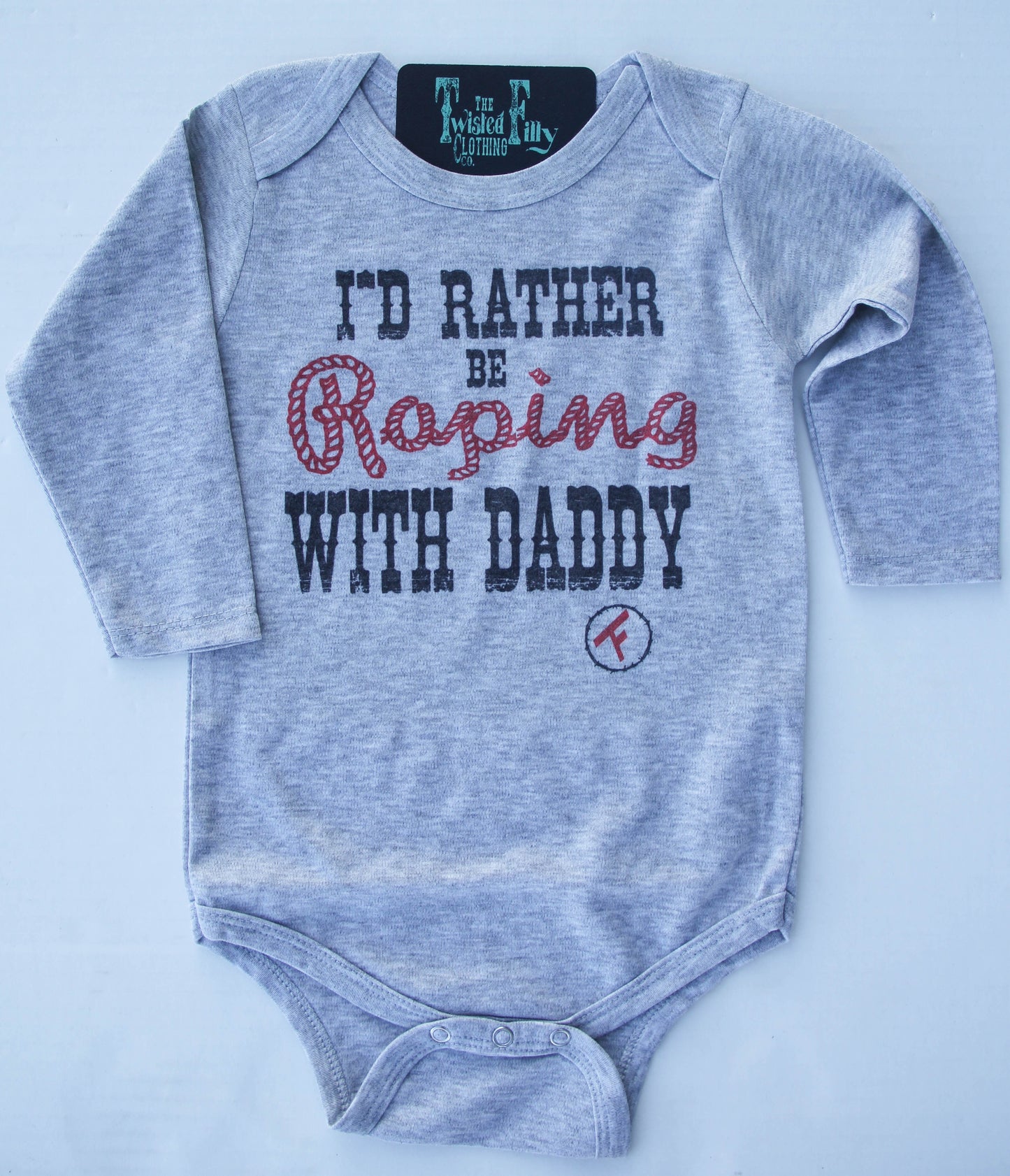I'd Rather Be Roping with Daddy - L/S Infant One Piece - Assorted Colors