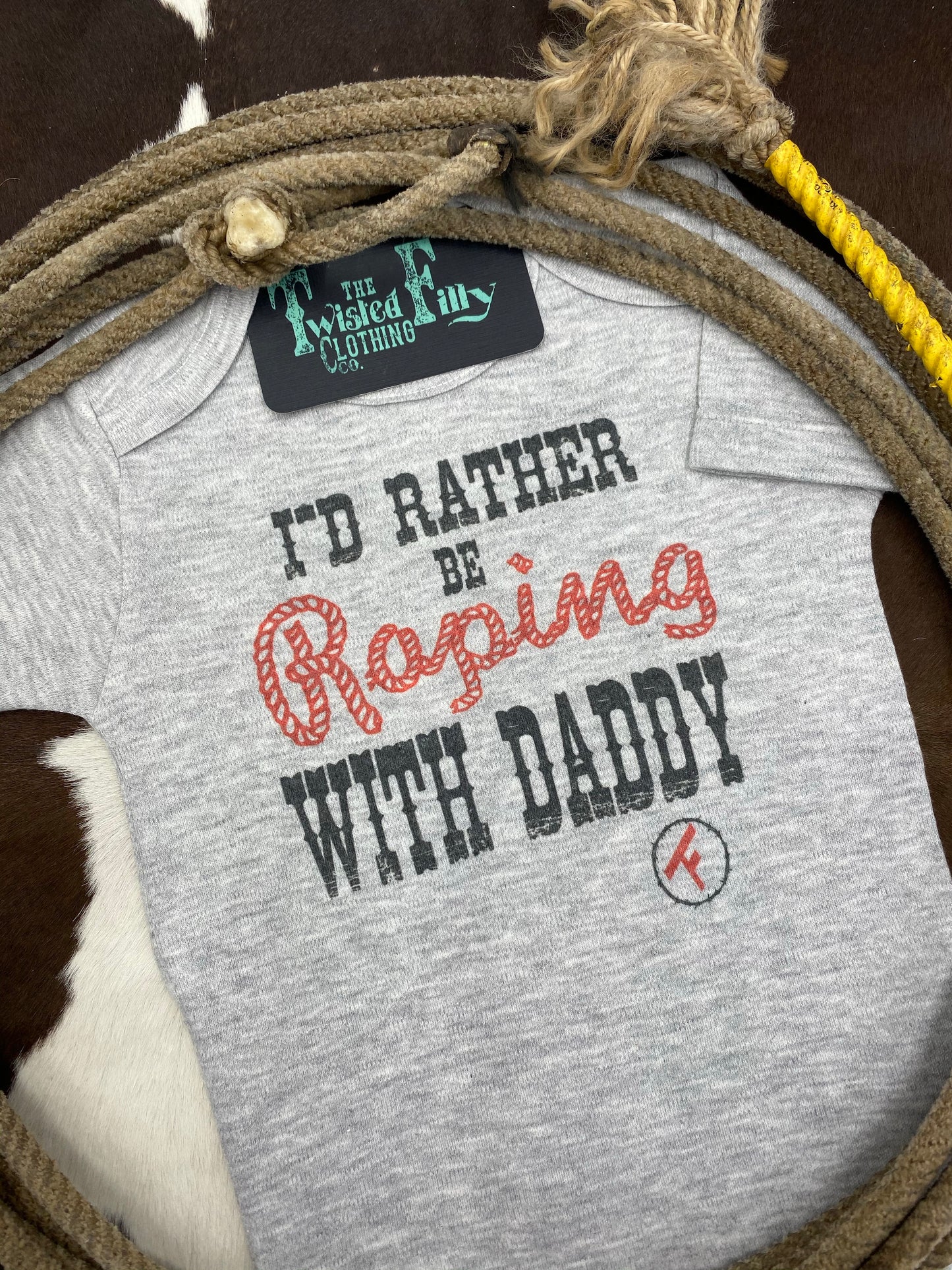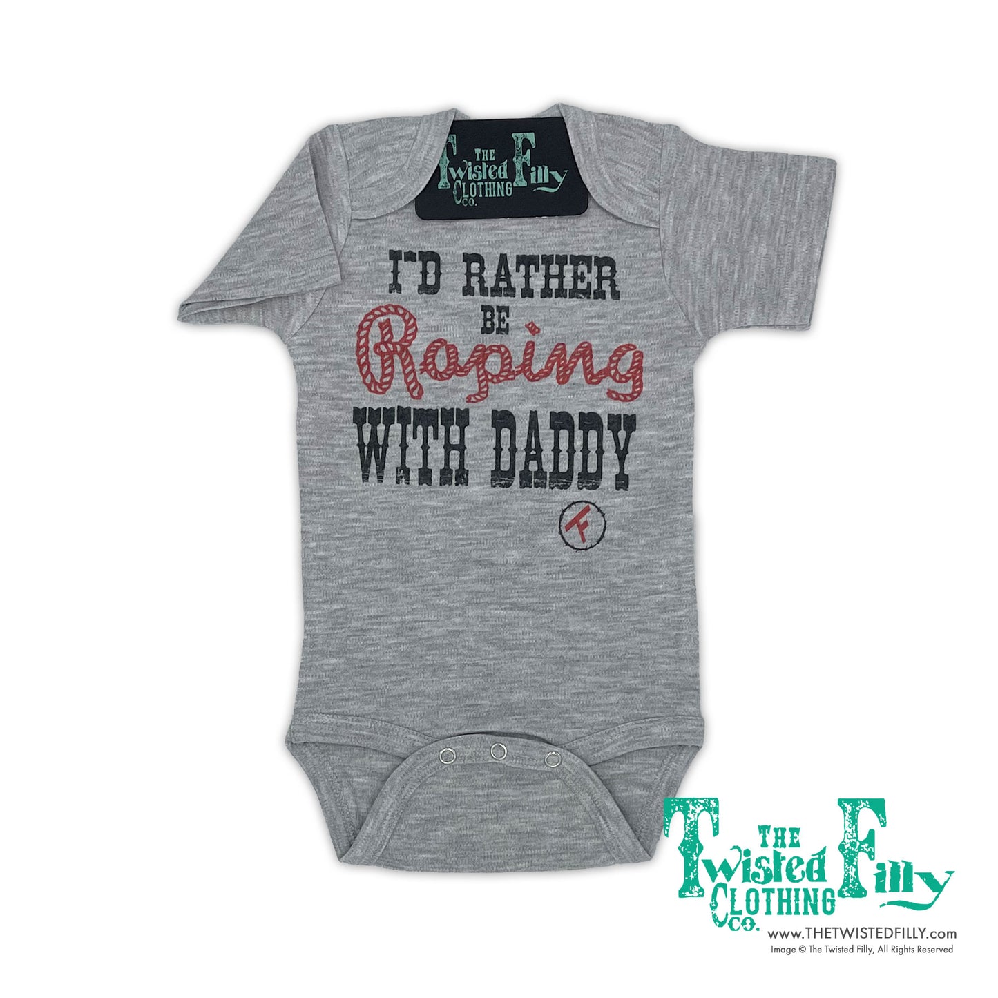 I'd Rather Be Roping with Daddy - S/S Infant One Piece - Gray