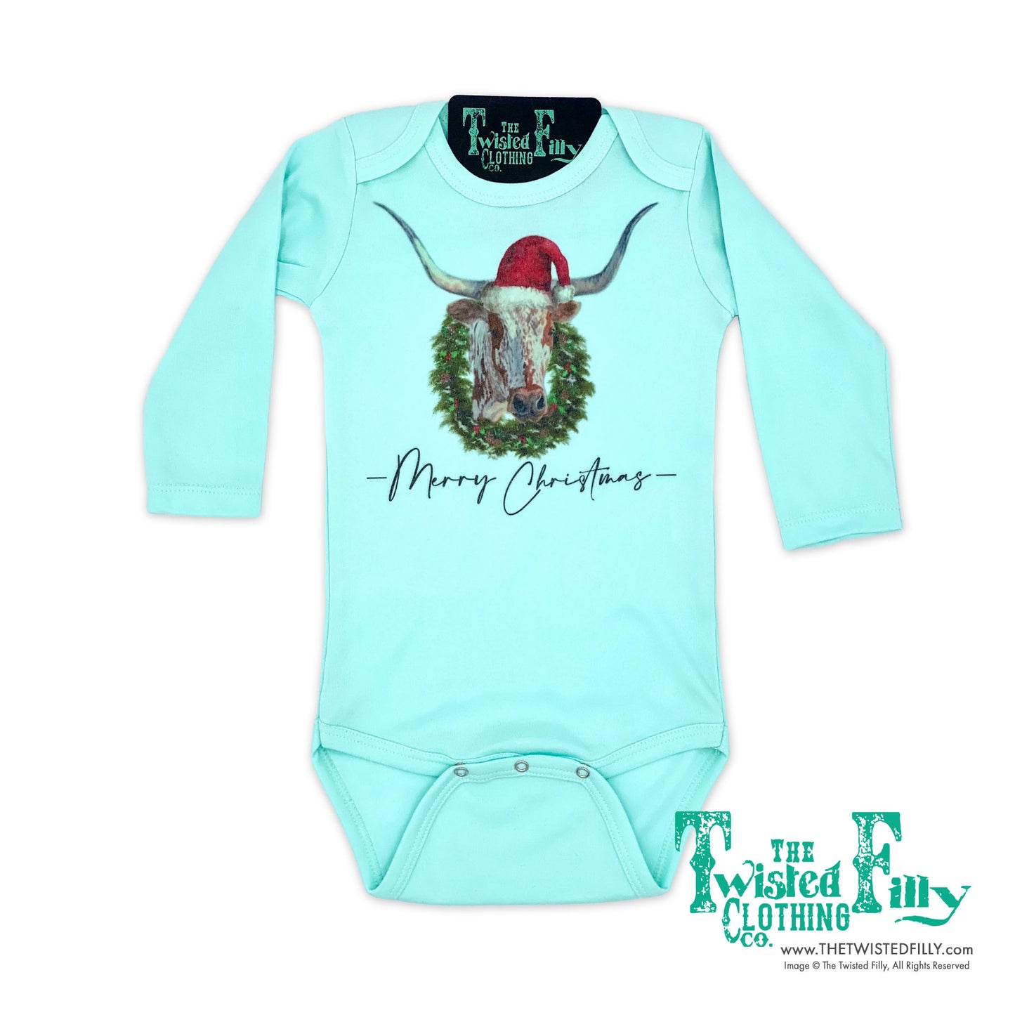 Merry Christmas Longhorn - L/S Infant One Piece - Turquoise