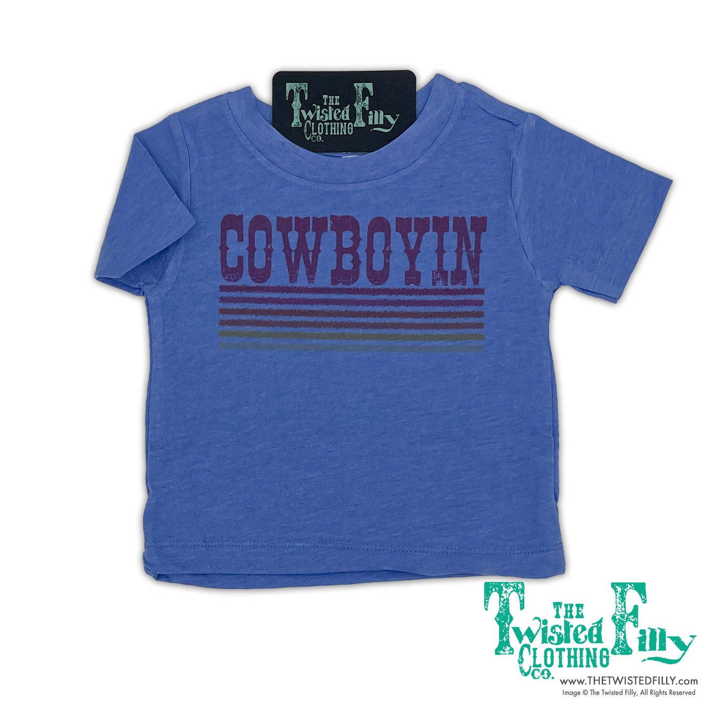 For all those Toddler Cowboys needing a shirt to wear proudly while doing their little hand things.This super soft triblend t-shirt is a must, and it will have your little hand comfy all day while he's cowboyin'.