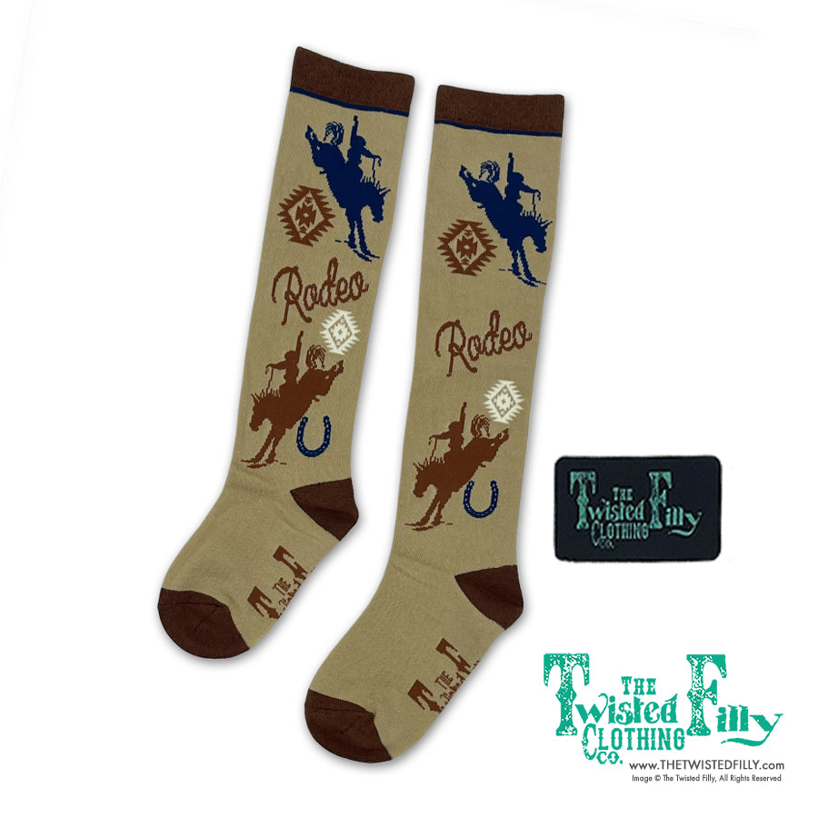 Tan & Blue Rodeo Youth Boot Socks