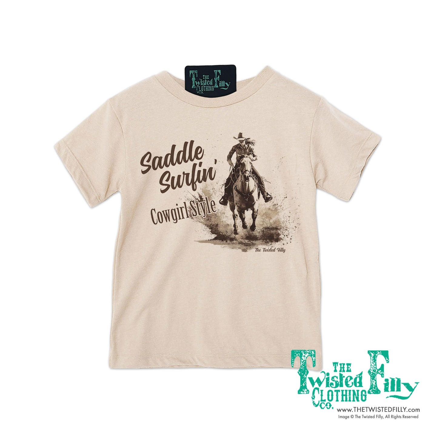 Saddle Surfin' Cowgirl Style - S/S Girls Toddler Tee - Assorted Colors
