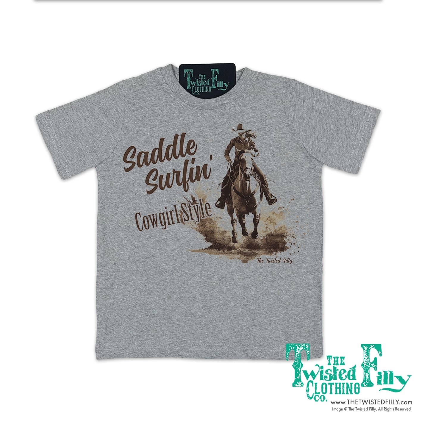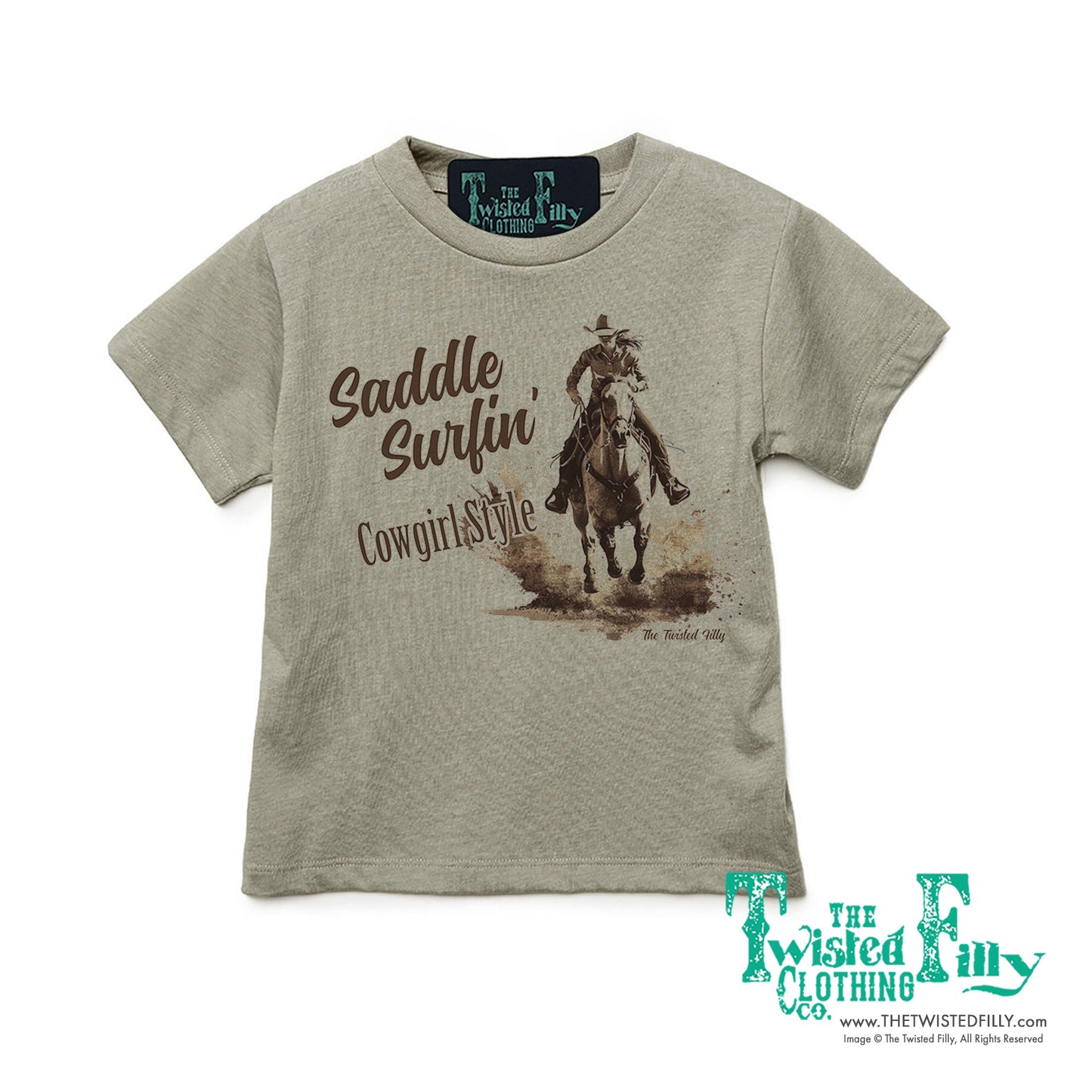 Say hello to "Saddle Surfin' Cowgirl Style"! Whether your littles are having a blast at the rodeo or just chilling at the ranch, this style mixes cowgirl cool with a touch of beachy fun. So saddle up and ride the waves with apparel that's as tough as it is trendy. Join the Saddle Surfer tribe and let your little's western spirit run wild!