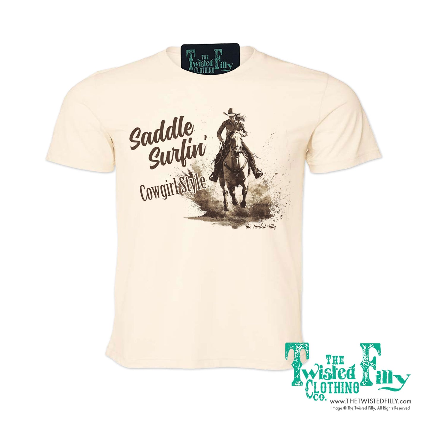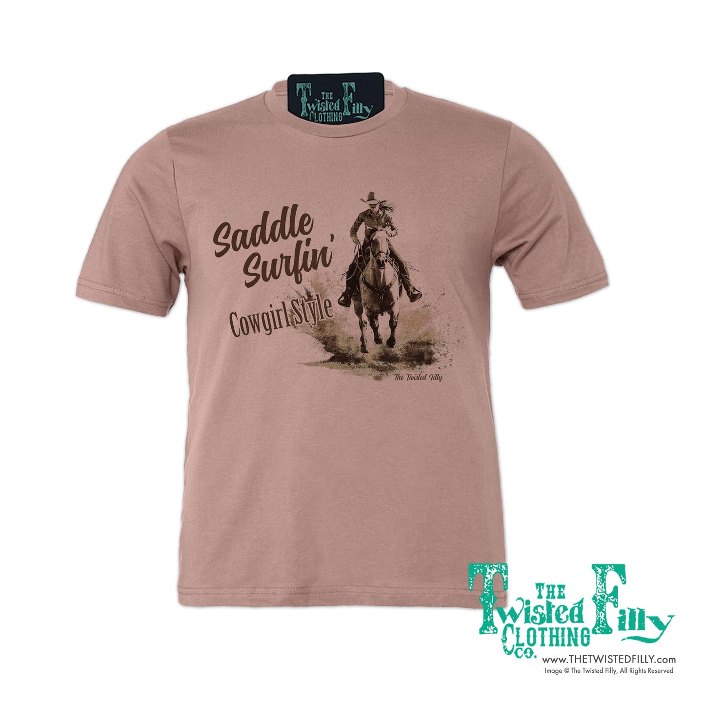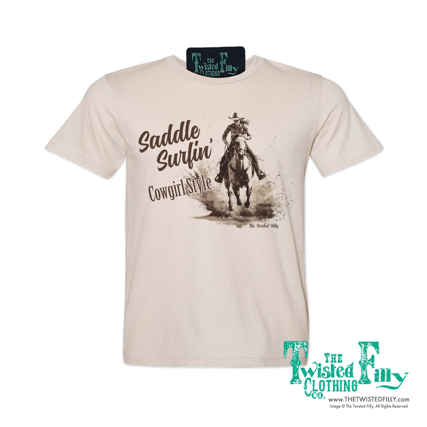 Saddle Surfin' Cowgirl Style - S/S Womens Crew Neck Unisex Tee - Assorted Colors