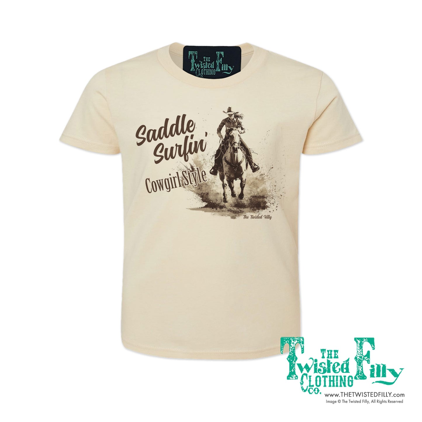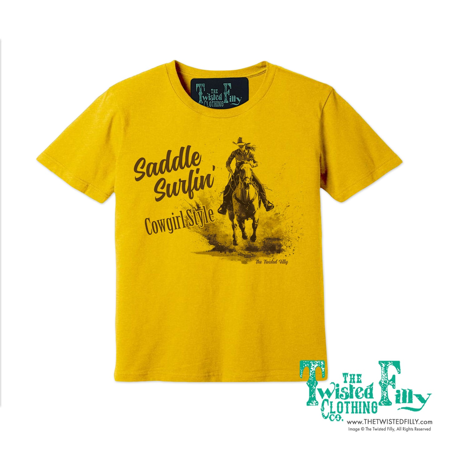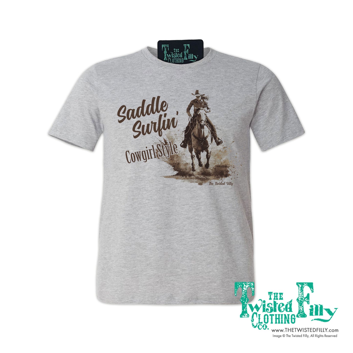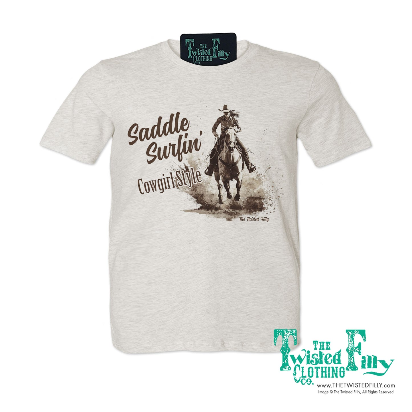Saddle Surfin' Cowgirl Style - S/S Womens Crew Neck Unisex Tee - Assorted Colors