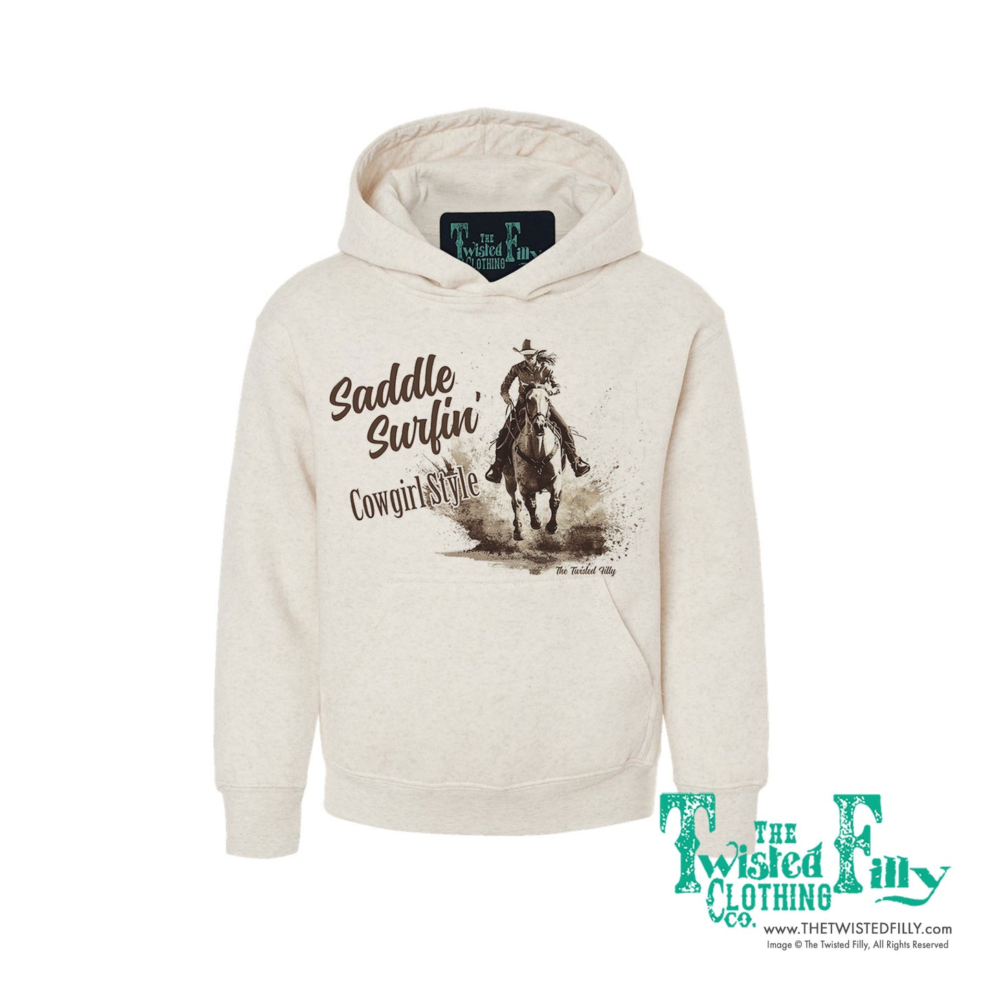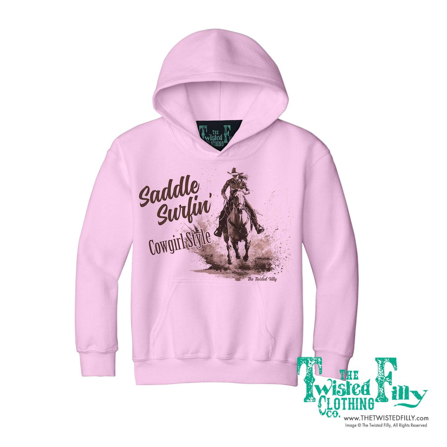 Saddle Surfin' Cowgirl Style - Youth Girls Hoodie - Assorted Colors