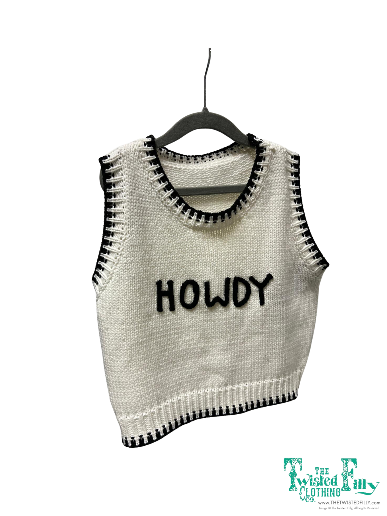 This ivory toddler sweater vest blends classic style and cozy comfort perfectly. Its soft fabric keeps little ones warm while the charming "Howdy" detail adds a playful touch. Easy to layer over shirts or under jackets, it’s ideal for everyday adventures and special outings alike. Make your toddler’s wardrobe both cute and practical with this versatile piece.