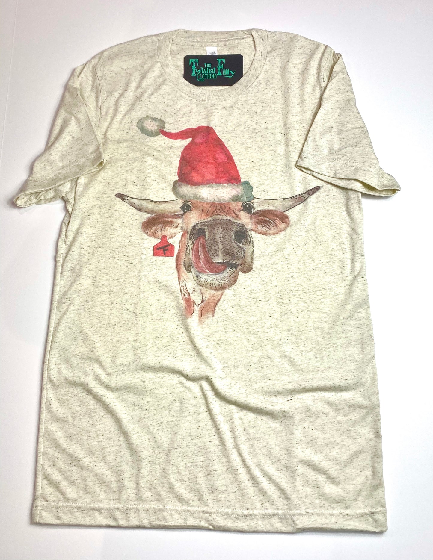 Looking for a fun and festive Christmas tee? Look no further, we present The Christmas Steer! The ideal cute conversational tee for all those holidays gatherings! This short sleeve crew neck tee is triblend, with softness for days!